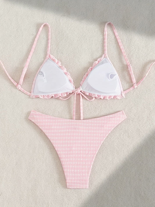 Mallorca Sweet – Roze & Wit Geruite Bikini Set met Strikje op de Rug