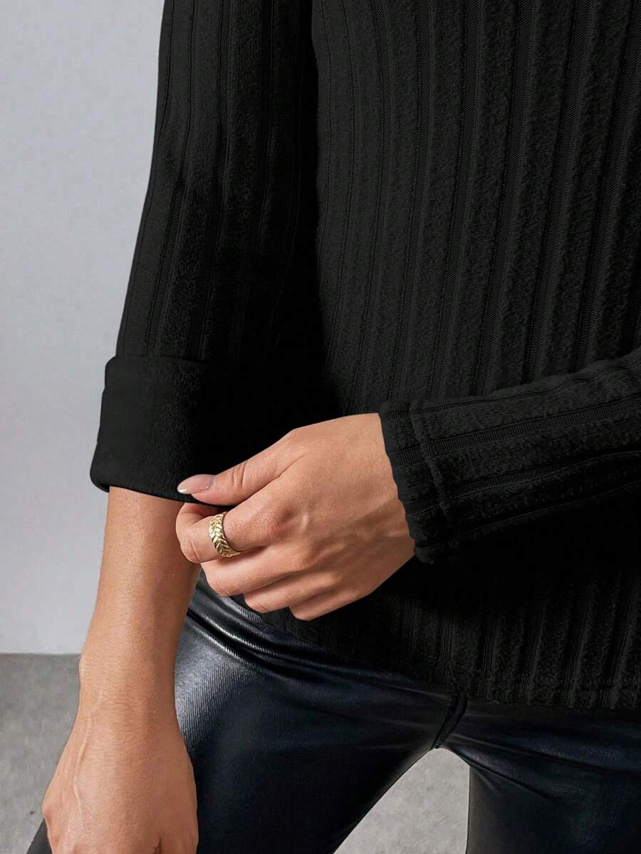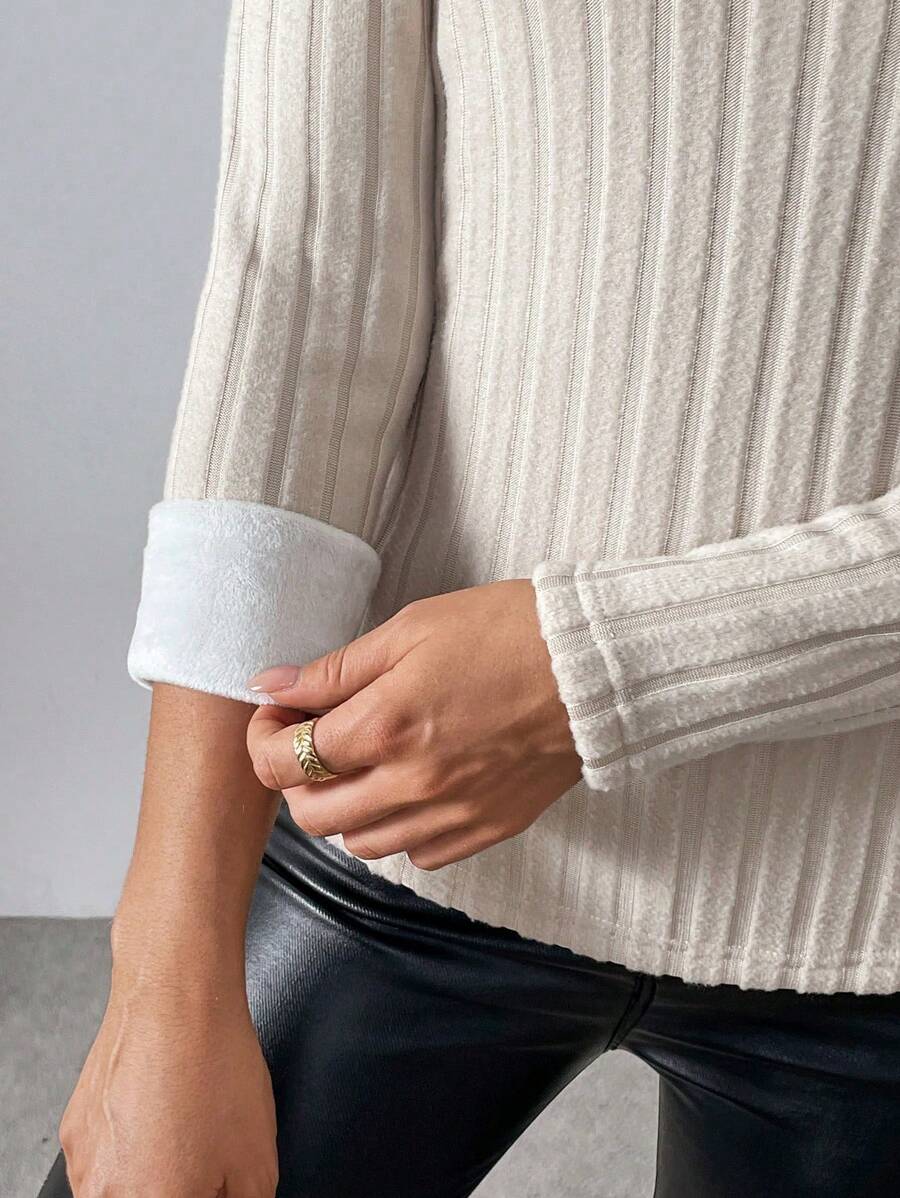 Calvaya Blusa de malha canelada com forro térmico e gola alta, manga comprida, outono