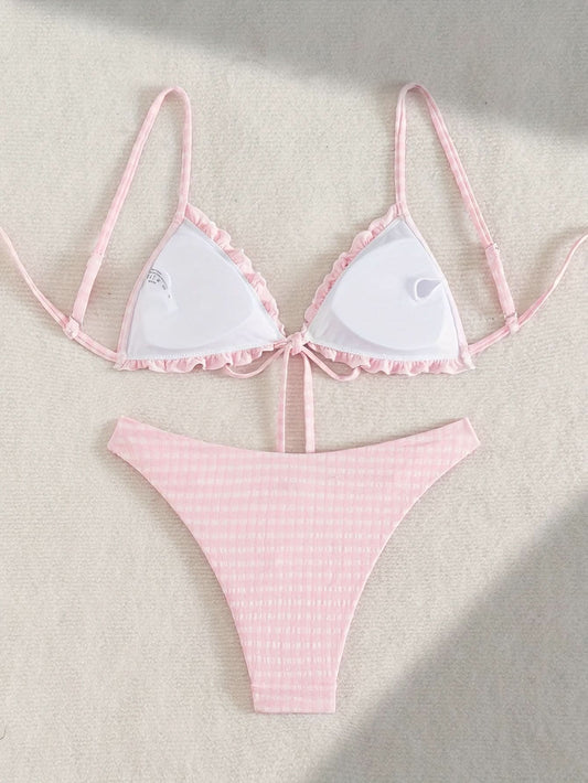 Mallorca Sweet – Pink & White Plaid Tie-Back Bikini Set